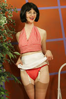 Julia's Funky Garter Belt Striptease Julia is wearing a short white skirt and her red panties are clearly visible. As she dances she shows off her bottom and you can see her panties as she sways to the music. She lets you under her skirt as she dances over you and you look at her stocking tops and vintage garter belt. Her flirty top covers a very sexy vintage bra. Julia loves to strip and show off. She dances with her panties right in front of your face and you can see right through the sheer red nylon. Julia finishes with a very sexy masturbation scene in which she uses her panties as well as her fingers to bring herself to orgasm. This is a very sexy classic striptease movie that just takes it a little further. |