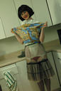 her skirt and shows off her black girdle and cute plaid bikini panties.