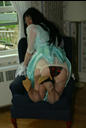 nylon panties. She gets on her hands and knees and puts one of her red