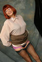 She gets on her hands and knees and shows off her girdled bottom as she pulls