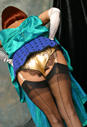 Lauren is outside, flipping up her skirt, showing off her girdle, stockings and panties